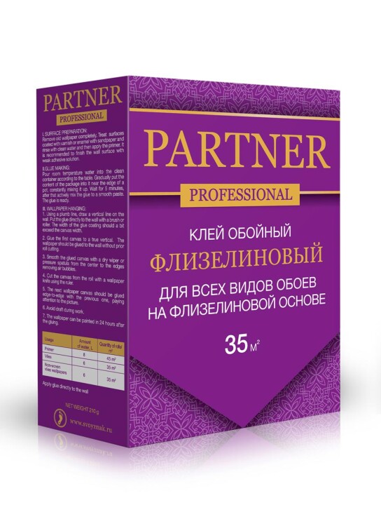Клей обойный PARTNER Флизелиновый 210гр 35 м2